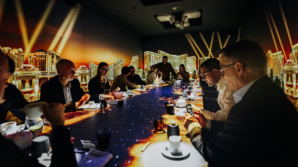 Dès votre arrivée, vous êtes accueillis dans un environnement onirique qui évoque les grandes thématiques du casino et du jeu.